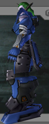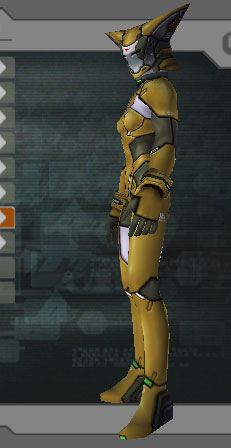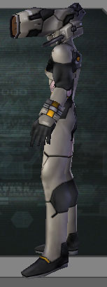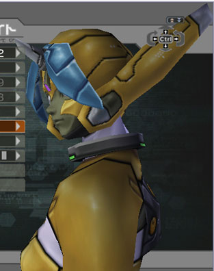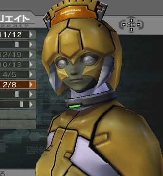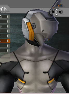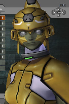 | Two different head-covers for the same face. The face is rather Cyclopic, with pointed chin. Trying to hide the mono-eye proves difficult. UNLIKE on PSO the armor seams do NOT change according to armor paint color, so you're stuck with ANY seam you see here. | |||||||||||||||||||||||||||