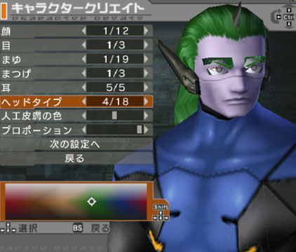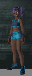 This head for girls is nice as well. It looks race-car or space-ship inspired, quite slick, really. It's too bad none of the guys have something like this to choose from...See how the fins reach all the way to the edge of the screen? The accent color on the bangs is nice too. This is another overlay head. | ||||||||||||||||||||||||||