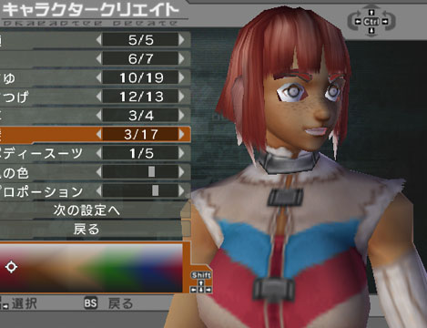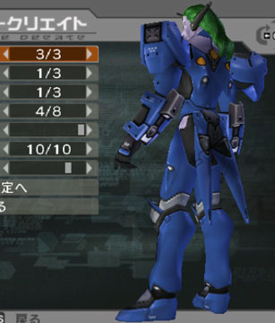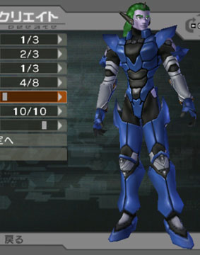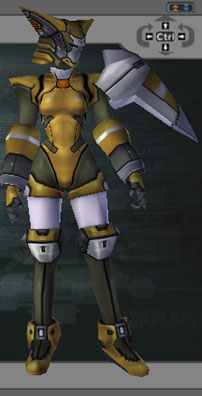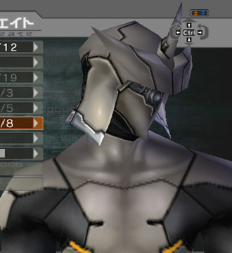 | This head is also quite strange. It has a Samurai-helmet-esque back, and slits on the front. The horns are really large and unusual. One of the arm armor options (there are 3) yeilds a MASSIVE shoulder guard for some reason. Look at it! She seems to be equipping a shield, but...why... | |||||||||||||||||||||||||||